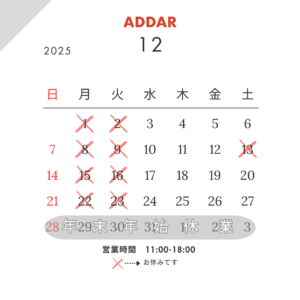 こんにちはADDARの淺野です! 新店舗も無事に11月24日に無事開店しました🌷HPも新仕様に変えていかねばですが、まずは現場優先なため順番にお待ちいただけますと幸いです🙇 オープン日の様 […]
